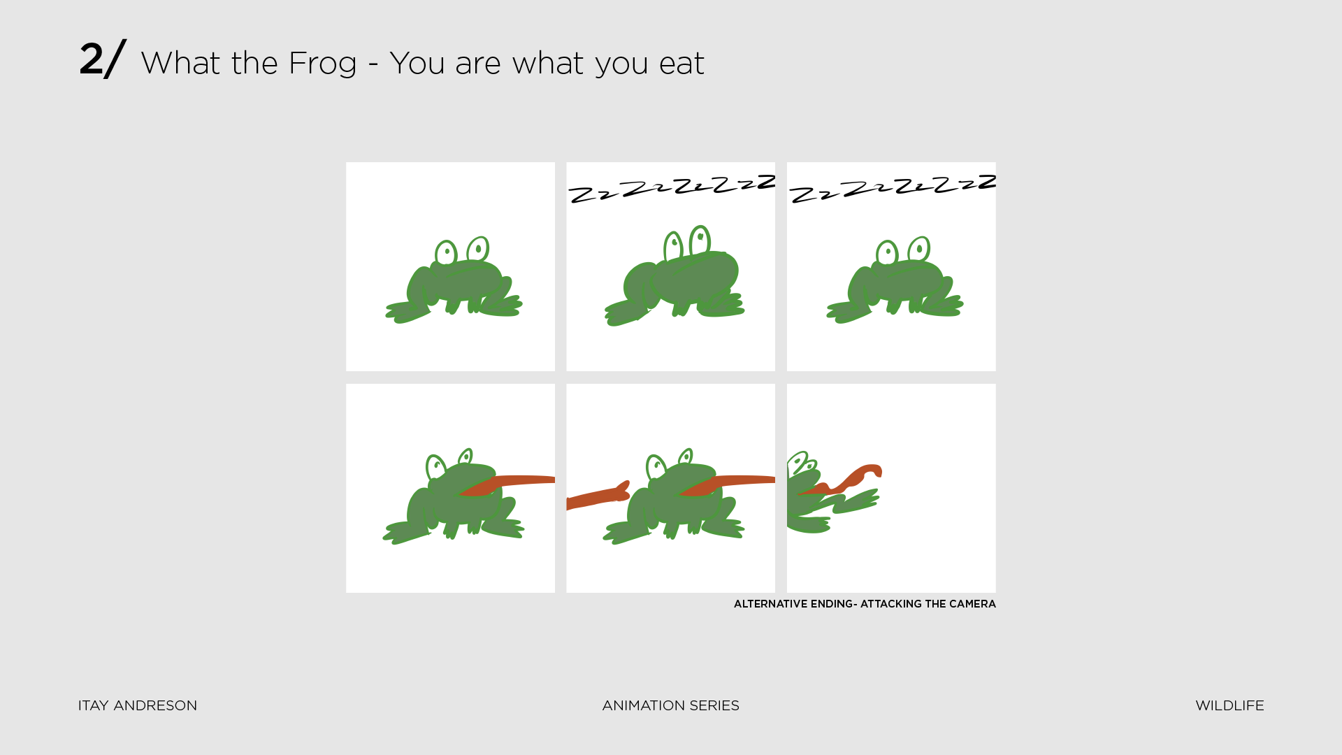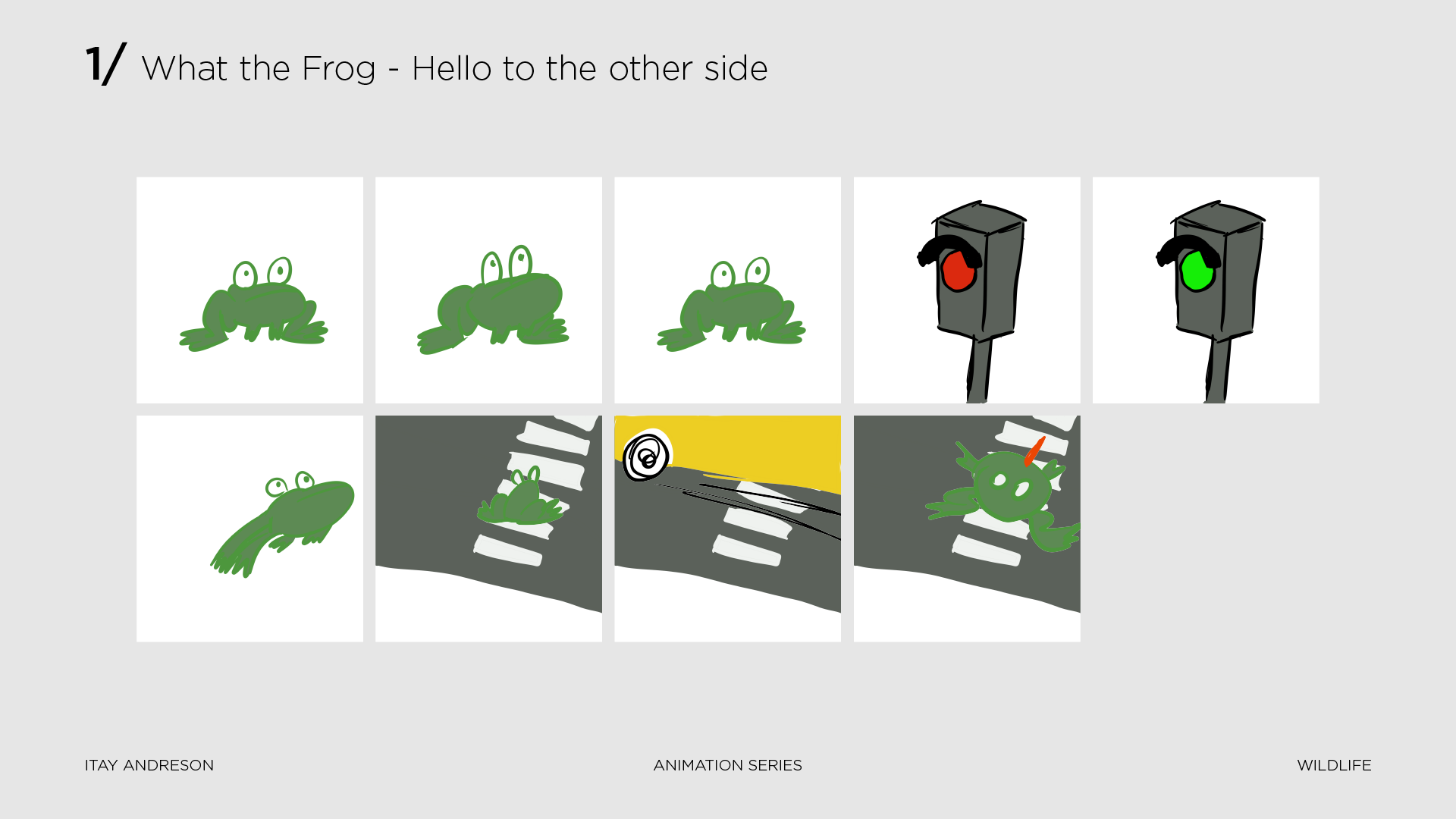 I emphasized on creating a fun, blobby, and simple character that I named Terry the Frog. His unique features, combined with the twelve principles of animation, were utilized to tell fun and surprising stories using minimal assets while maintaining a consistent story structure.